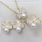 【伊飾童話】貓眼三葉草 天然珍珠項鍊耳環戒指三件組 NT$ 1280