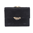 【iSPurple】稻穗印壓 印花霧面麂皮三折零錢短夾/黑 NT$ 599