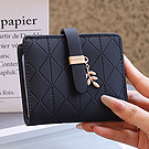 【iSPurple】搖曳金葉 菱格壓紋皮防盜刷卡片短夾/黑 NT$ 599
