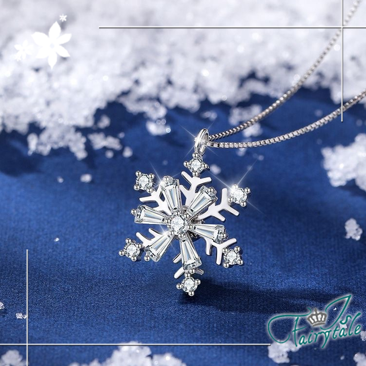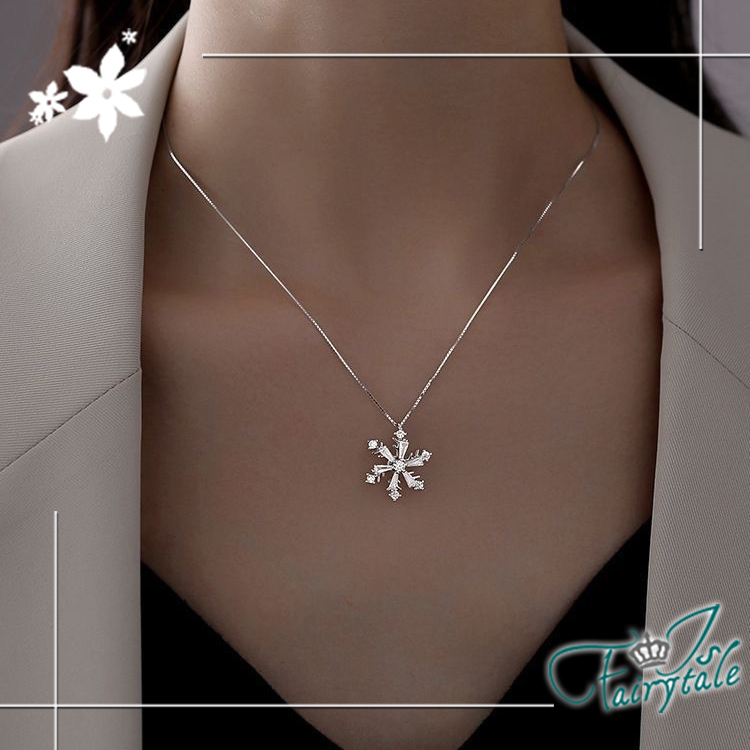 【伊飾童話】晶亮雪花 韓風鋯石可旋轉鎖骨項鍊/銀