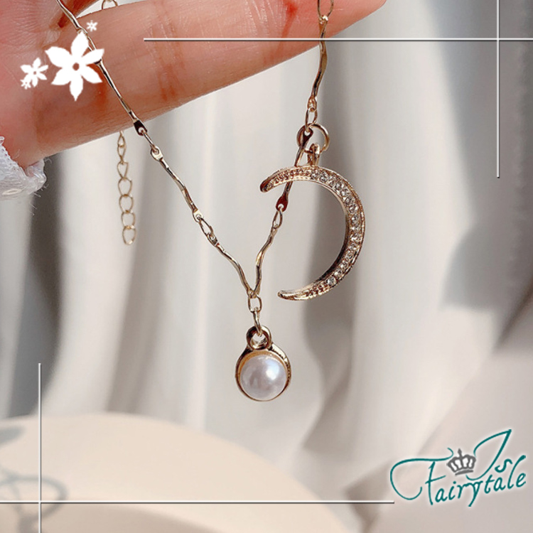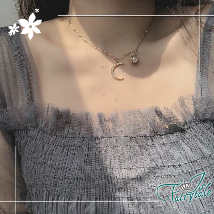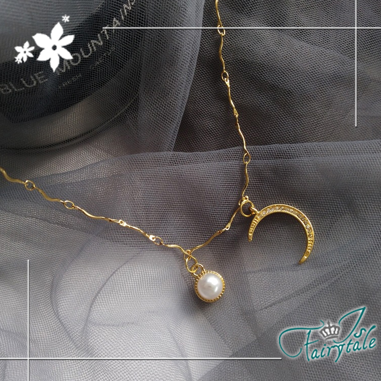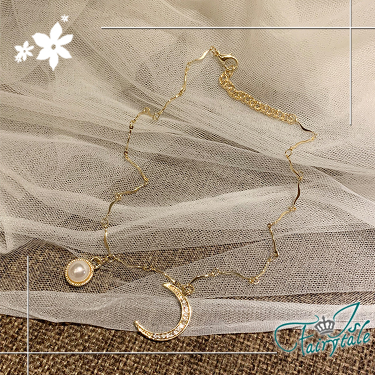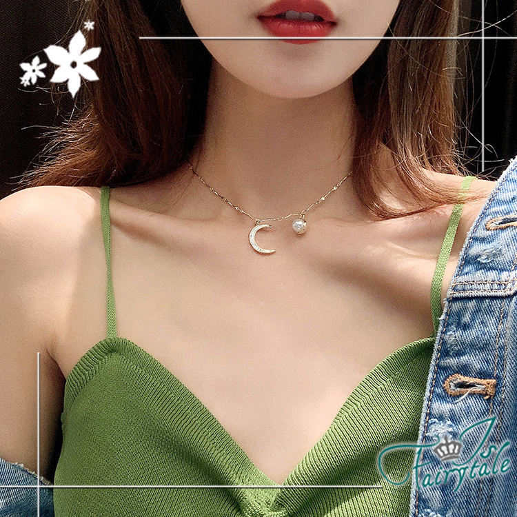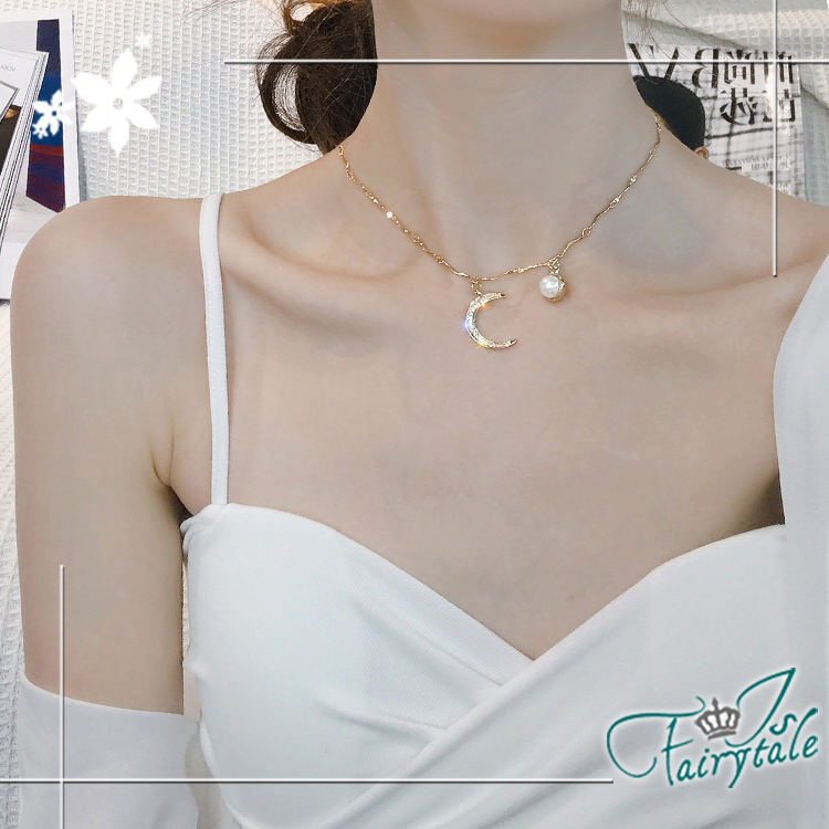 【伊飾童話】海浪星月 韓風典雅珍珠金繽鎖骨項鍊