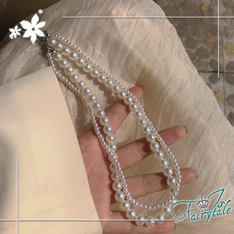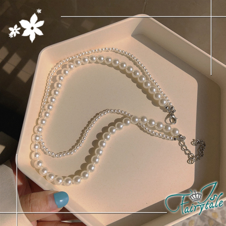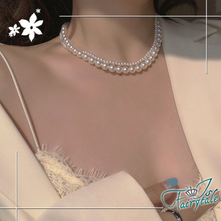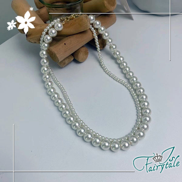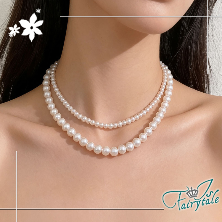 【伊飾童話】珍珠交錯 法式復古雙層纏繞短頸鍊