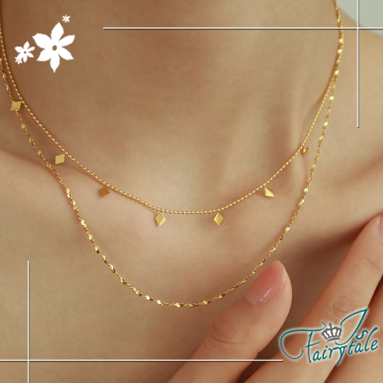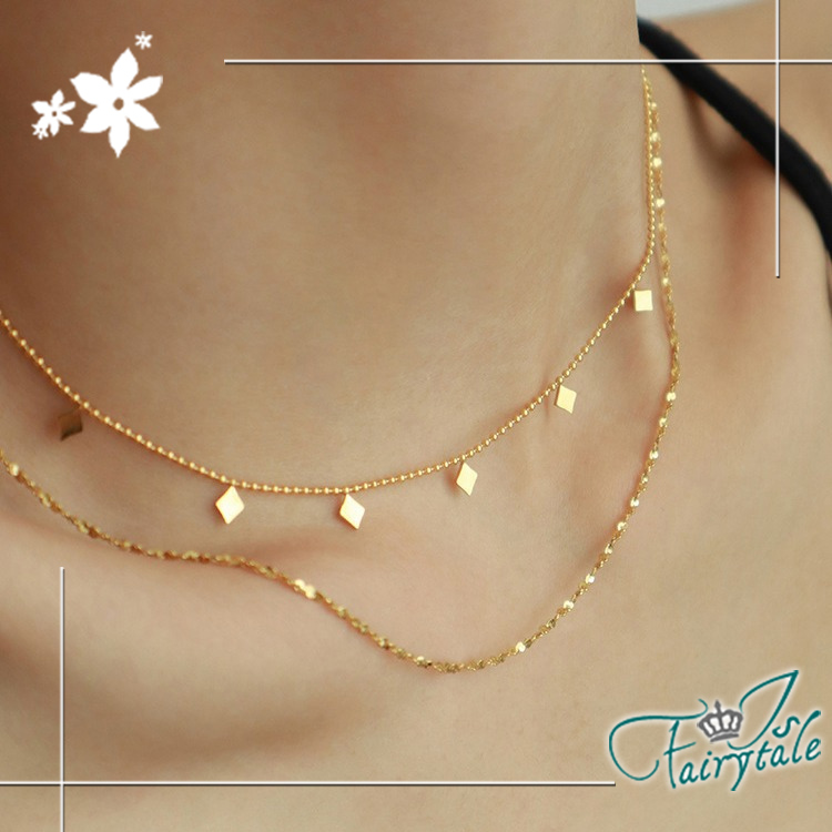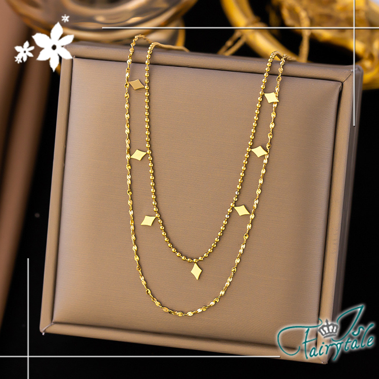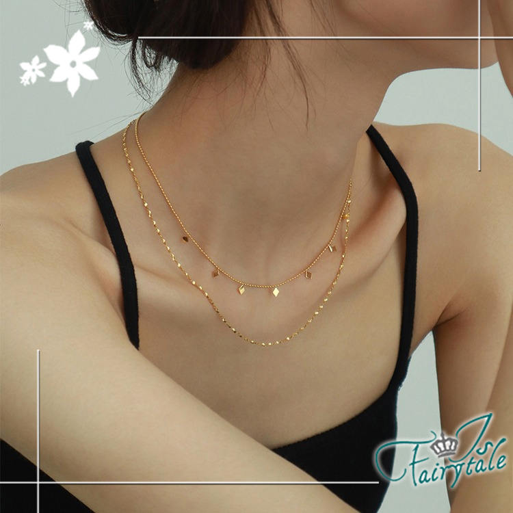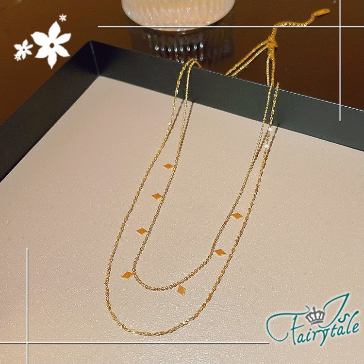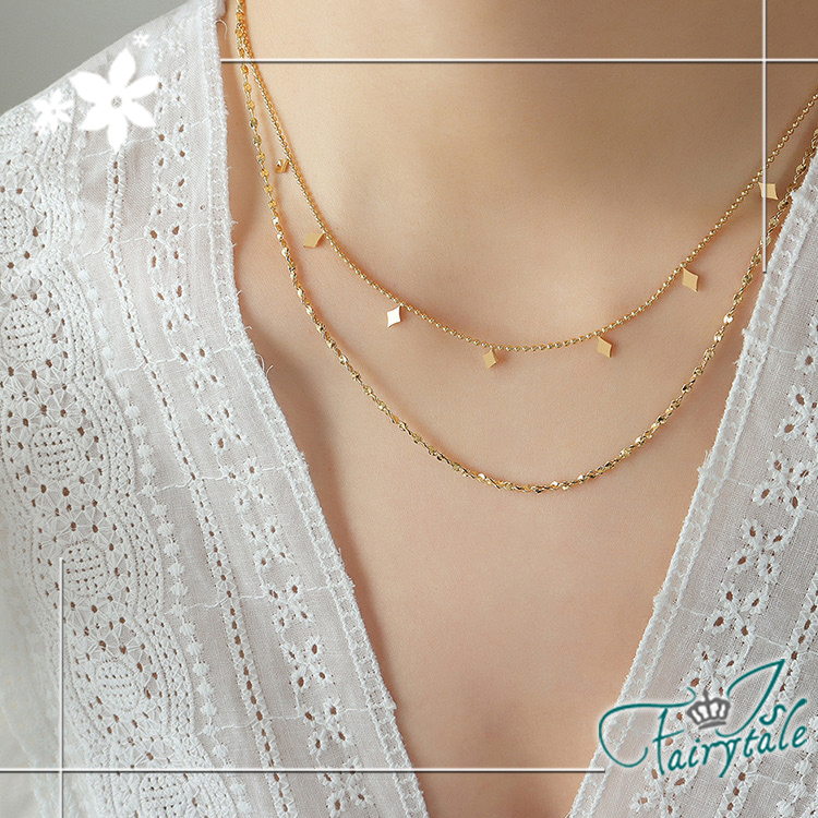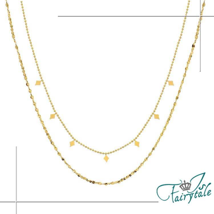 【伊飾童話】小方塊點綴 鈦鋼雙層疊戴鎖骨項鍊/金
