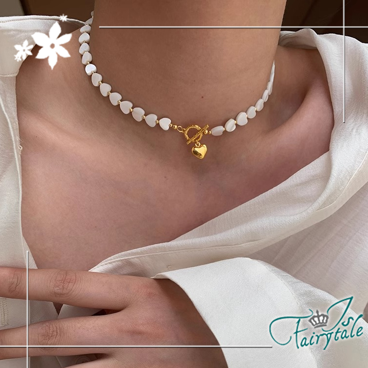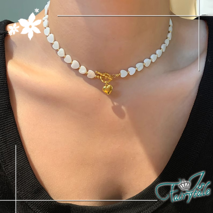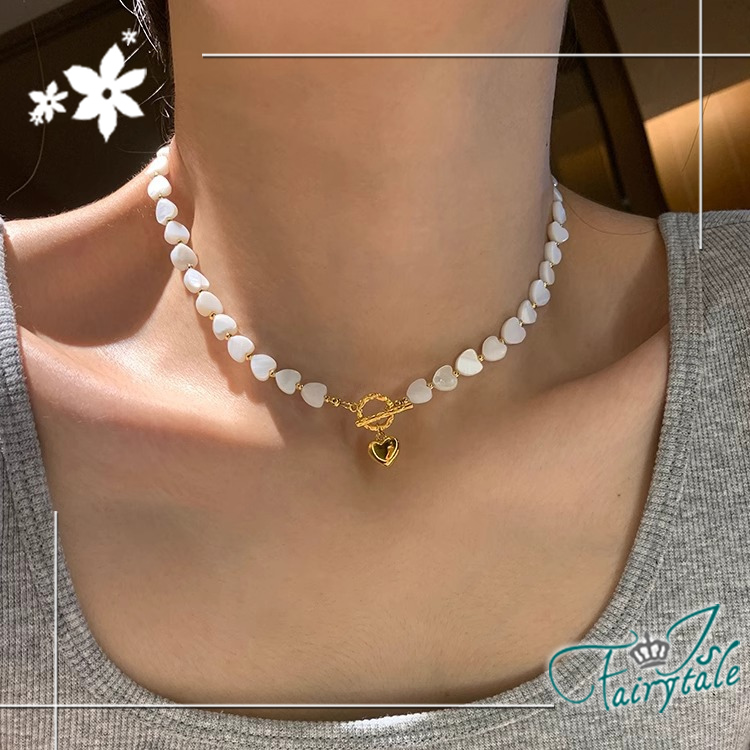 【伊飾童話】輕奢心戀 天然母貝串珠OT釦鎖骨項鍊