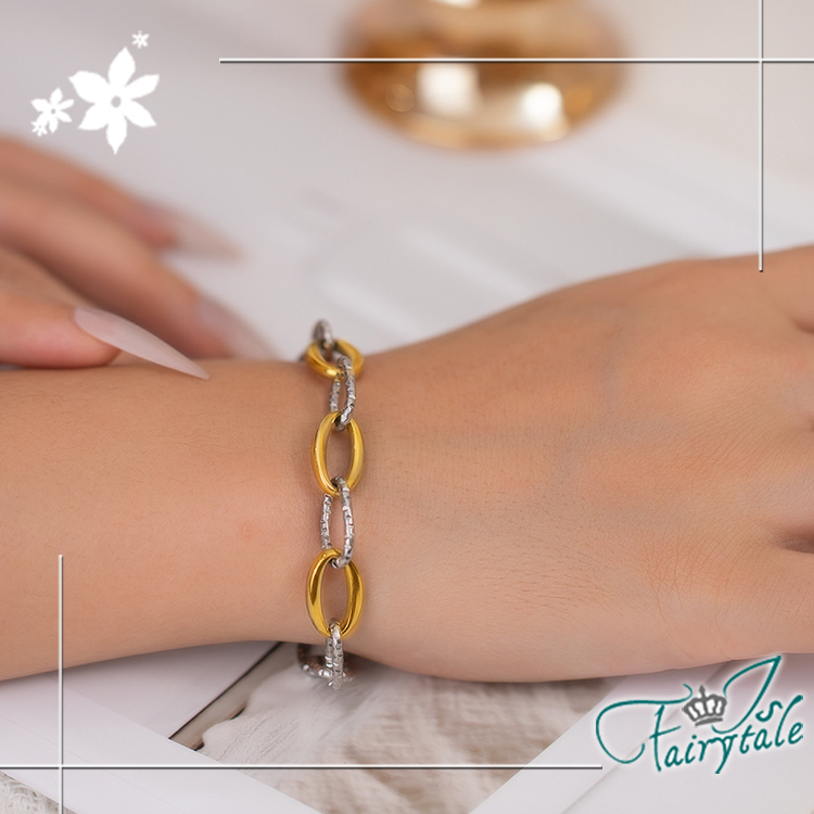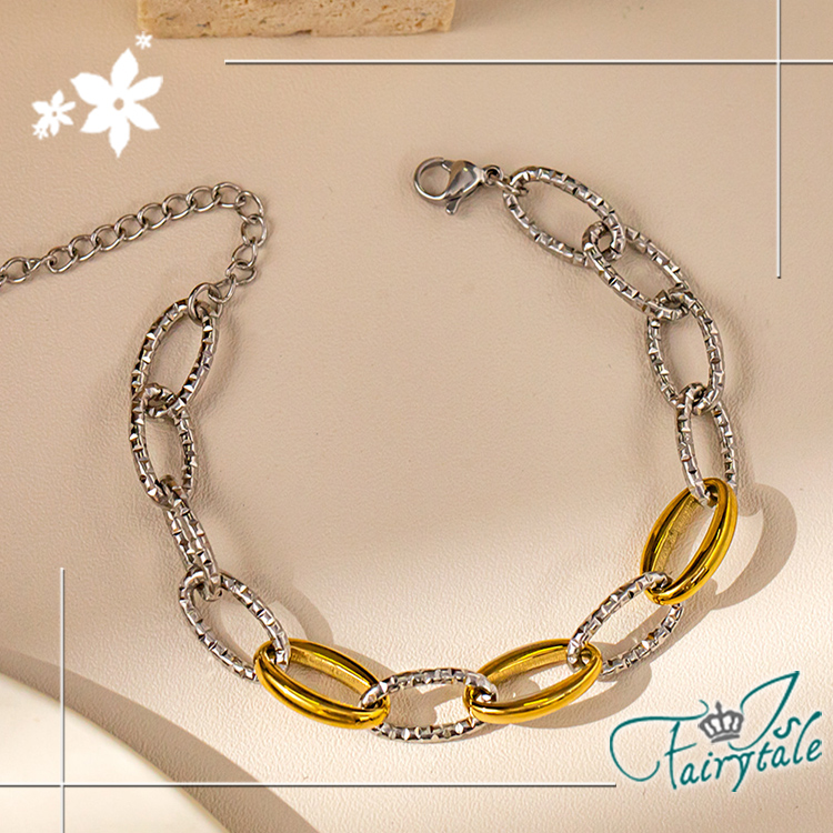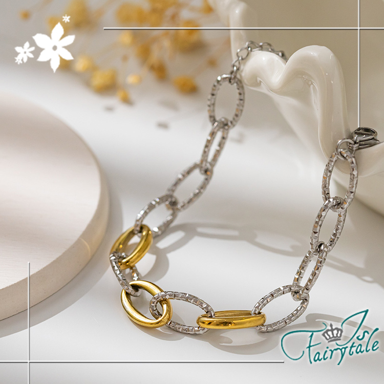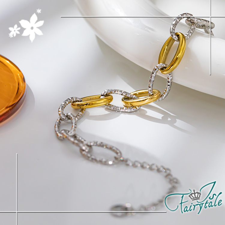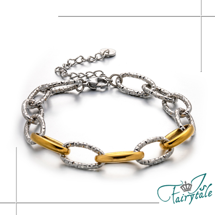 【伊飾童話】麻花寬鍊 歐美復古拼色鈦鋼手鍊