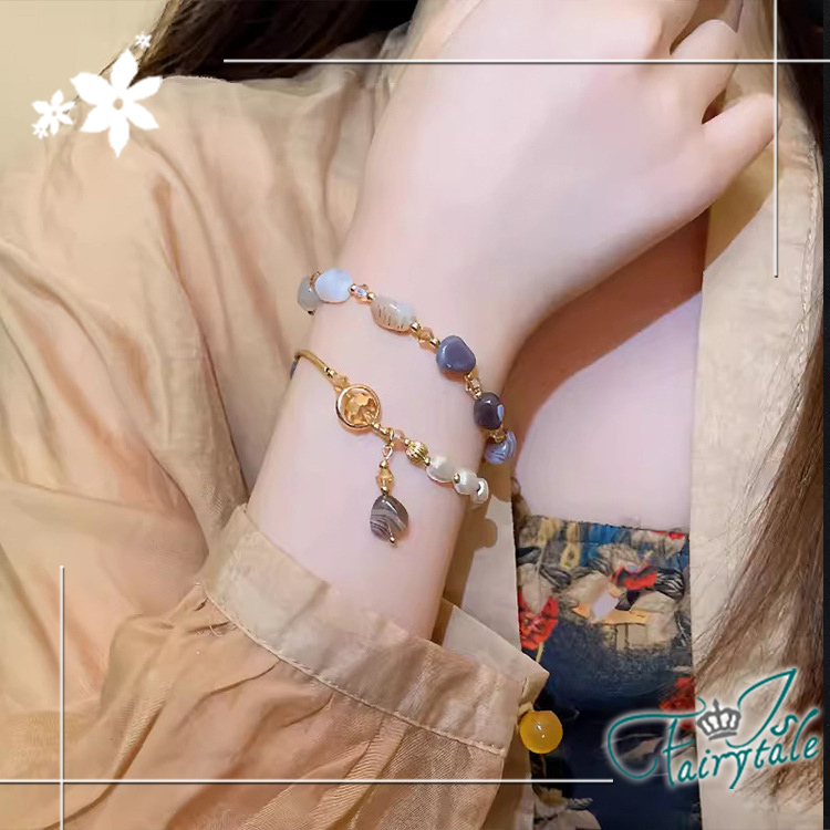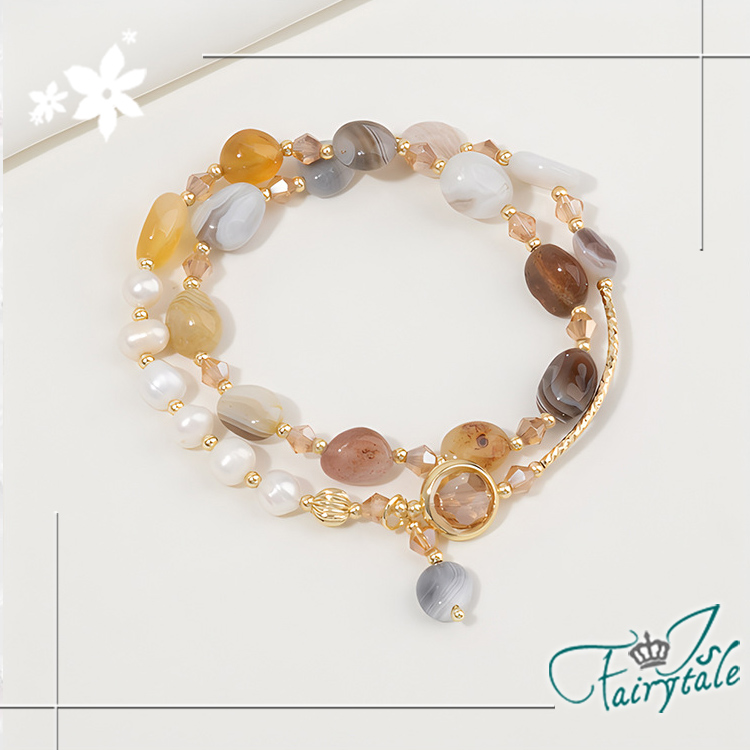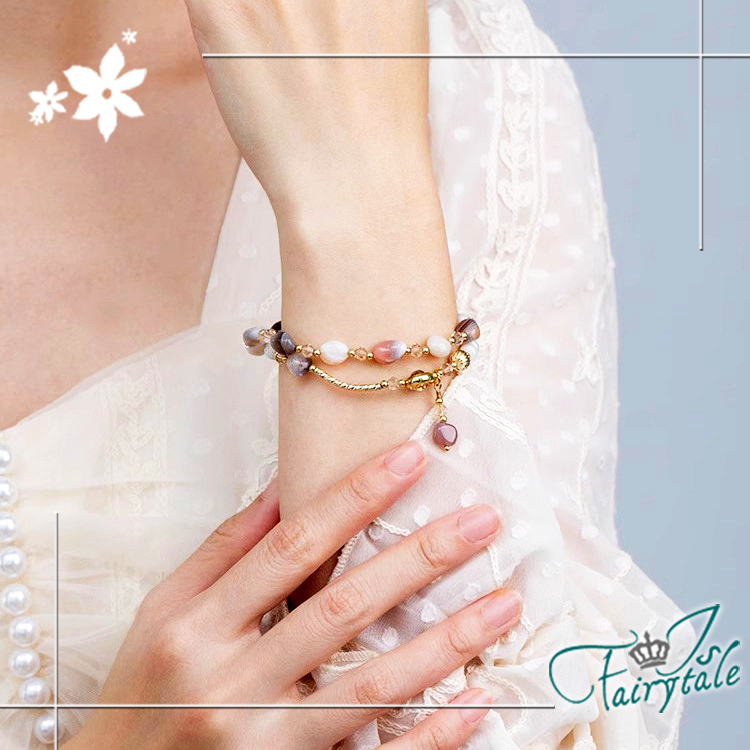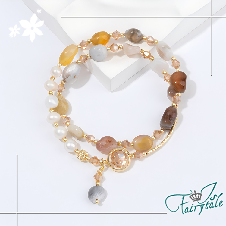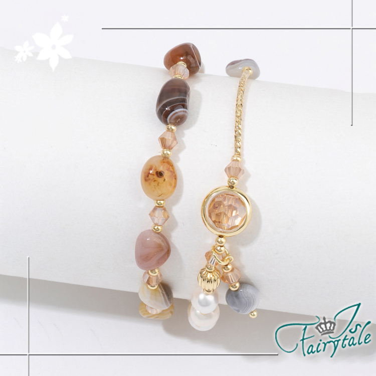 日韓雙層造型手鍊,彩色礦石與珍珠相互點綴,