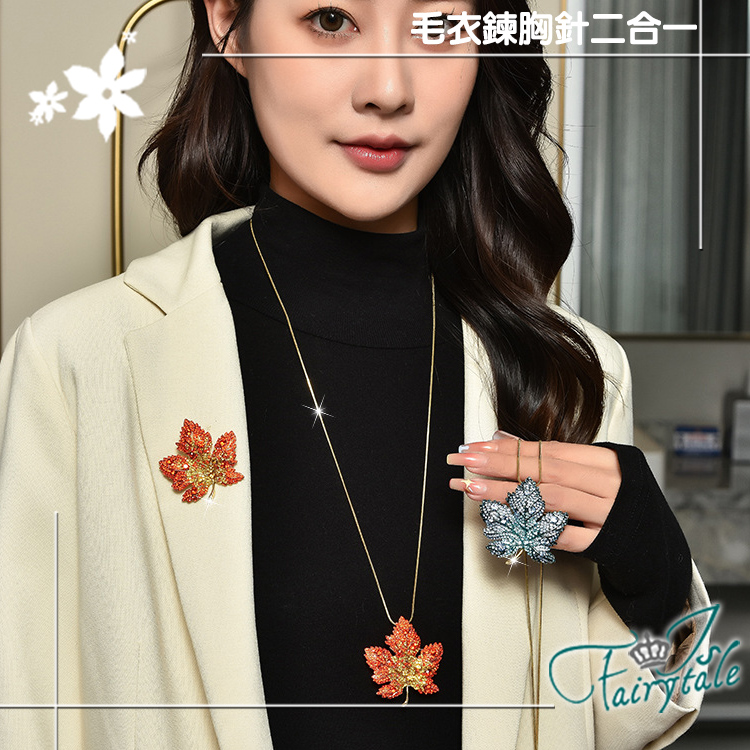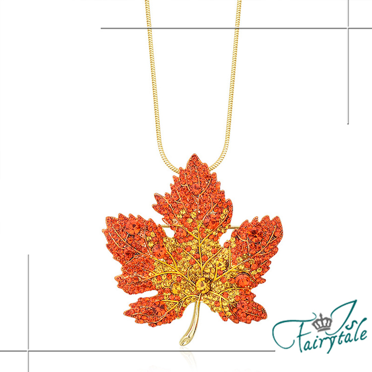 【伊飾童話】金紅楓葉 水鑽二合一胸針蛇紋長項鍊