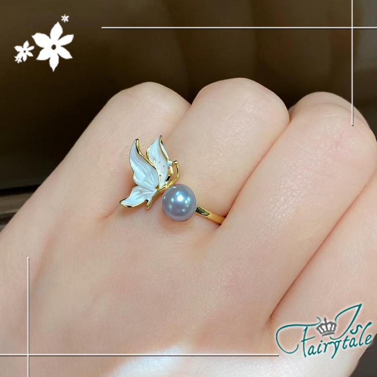 蝴蝶翩翩停駐在珍珠上,溫潤的光澤,低調奢華,