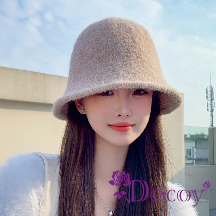 【Decoy】甜美百搭 羊絨保暖日系遮臉水桶帽/粉