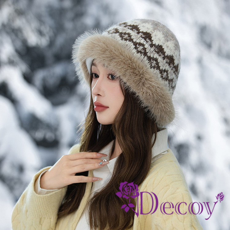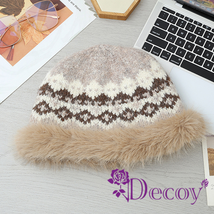 【Decoy】費爾島風 加厚毛絨保暖復古毛帽/米
