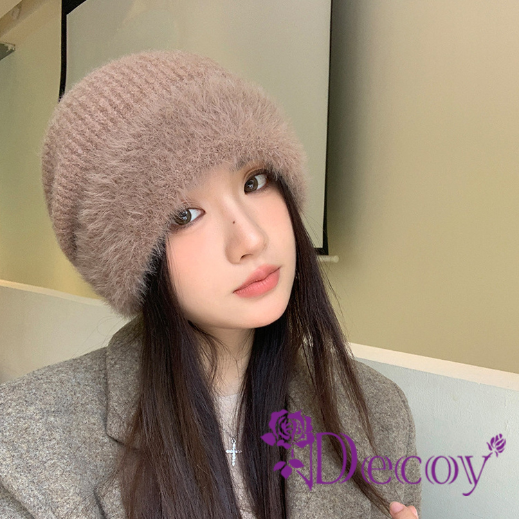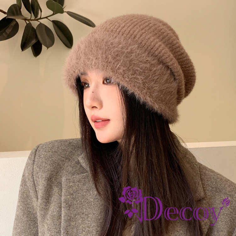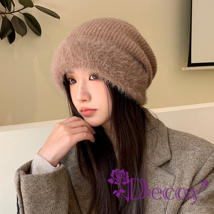 【Decoy】韓風秋冬 毛絨護耳針織包頭推推帽/咖啡