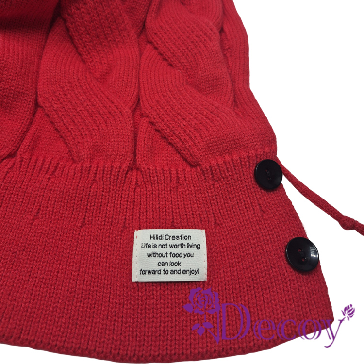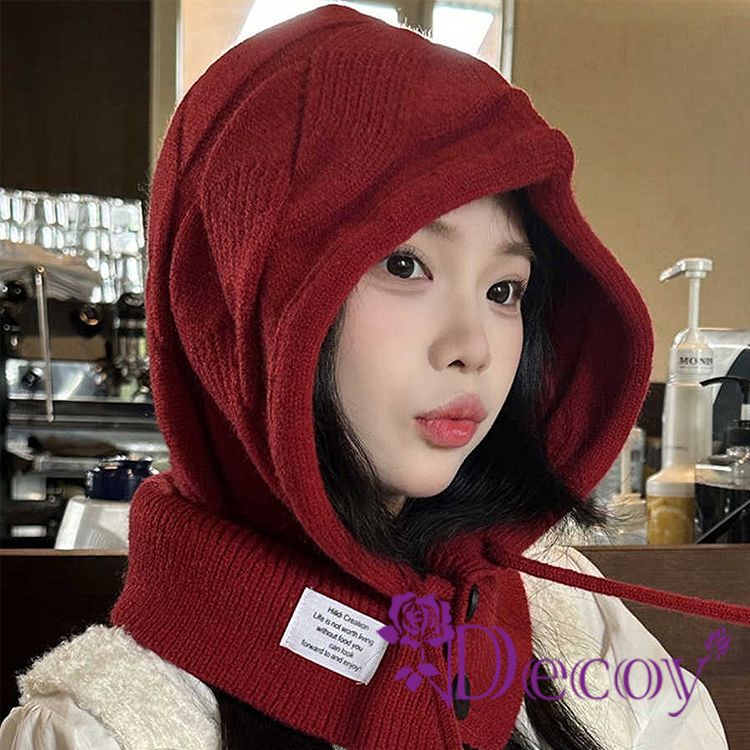 【Decoy】針織時尚 多巴胺風一體針織脖圍護耳帽/紅色