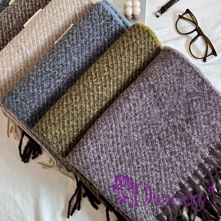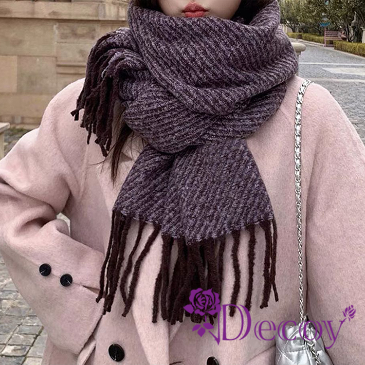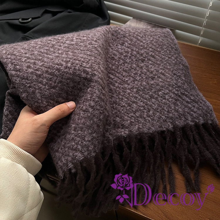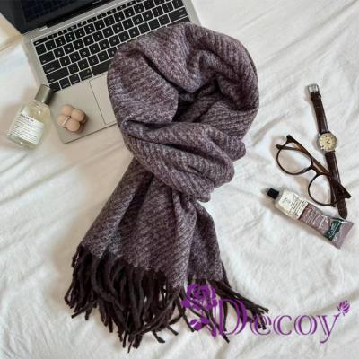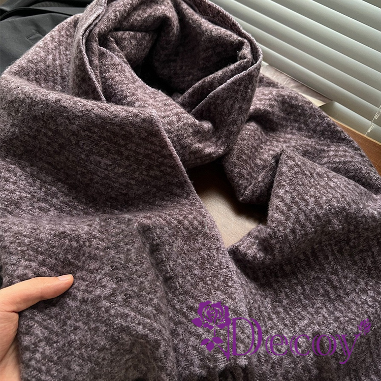 【Decoy】雪花點點 復古流蘇仿羊絨披肩圍巾/葡萄紫
