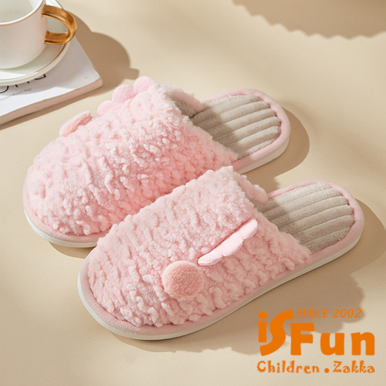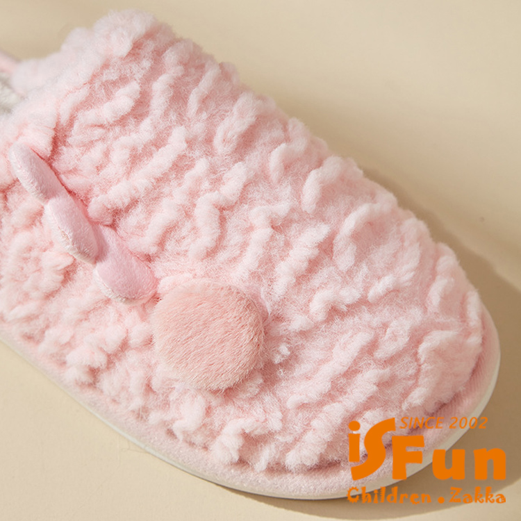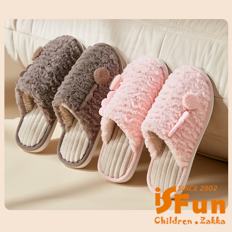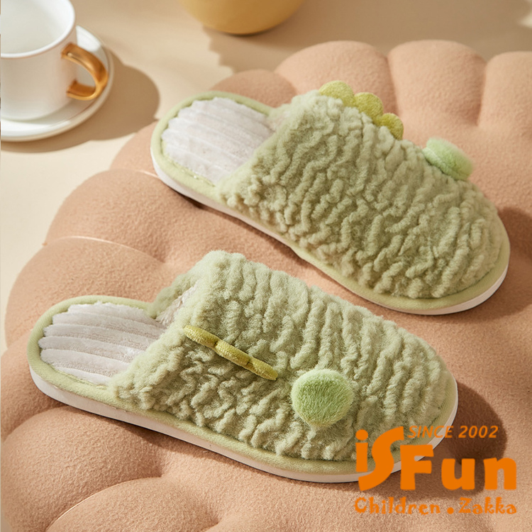 【iSFun】點點恐龍 秋冬防滑保暖男女室內拖鞋/粉色3637號