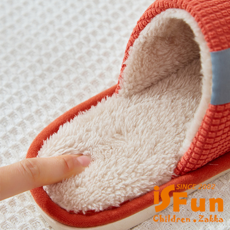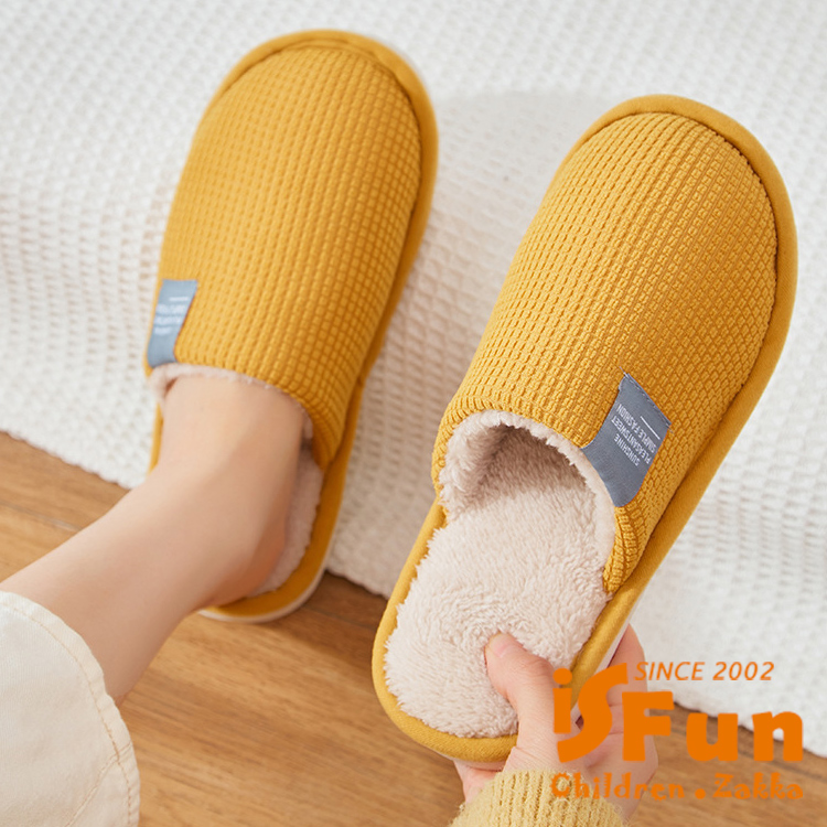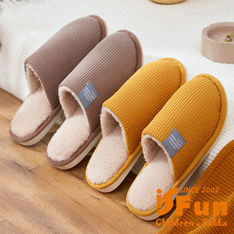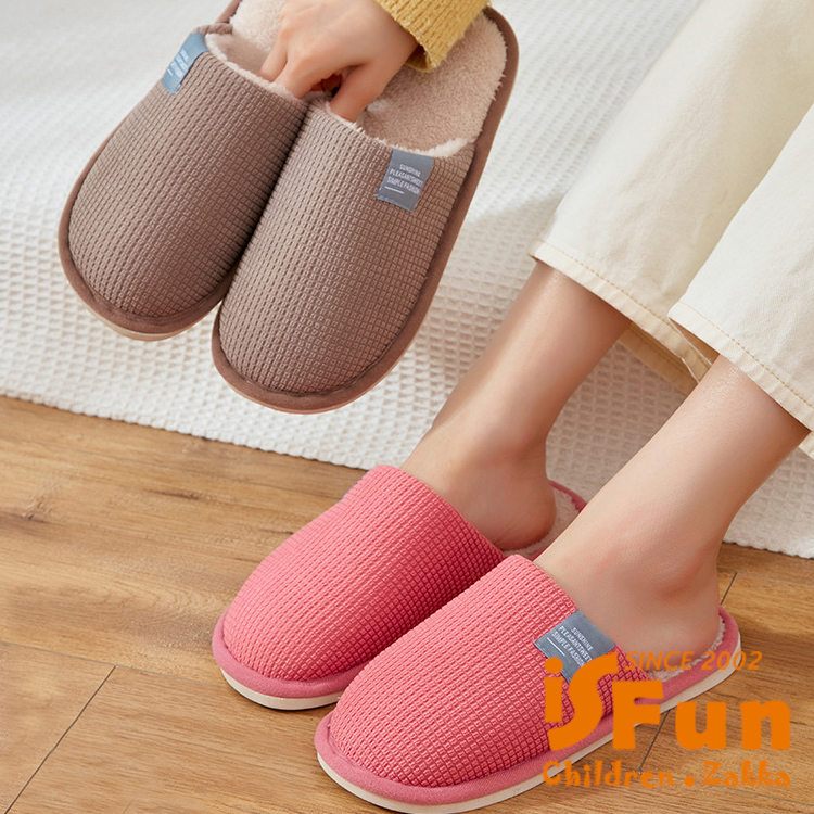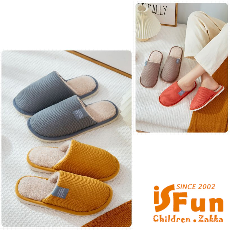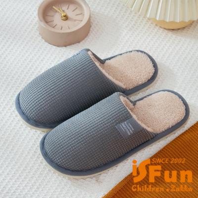 【iSFun】簡約格紋 男女刷毛保暖室內拖鞋/灰色4445號