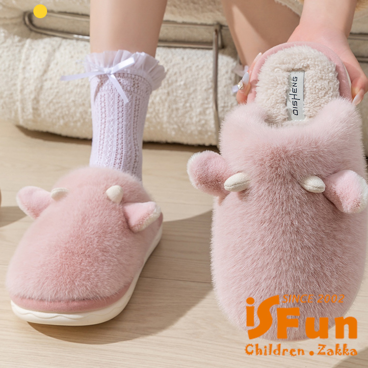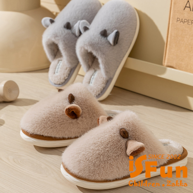 【iSFun】毛毛小牛 秋冬保暖室內拖鞋/卡其3637號