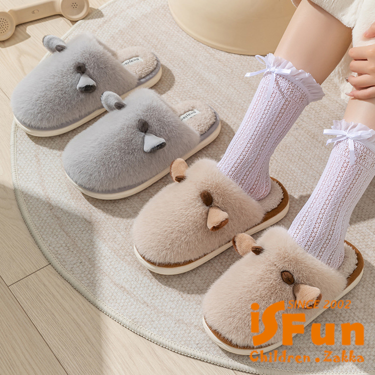 【iSFun】毛毛小牛 秋冬保暖室內拖鞋/綠色3839號