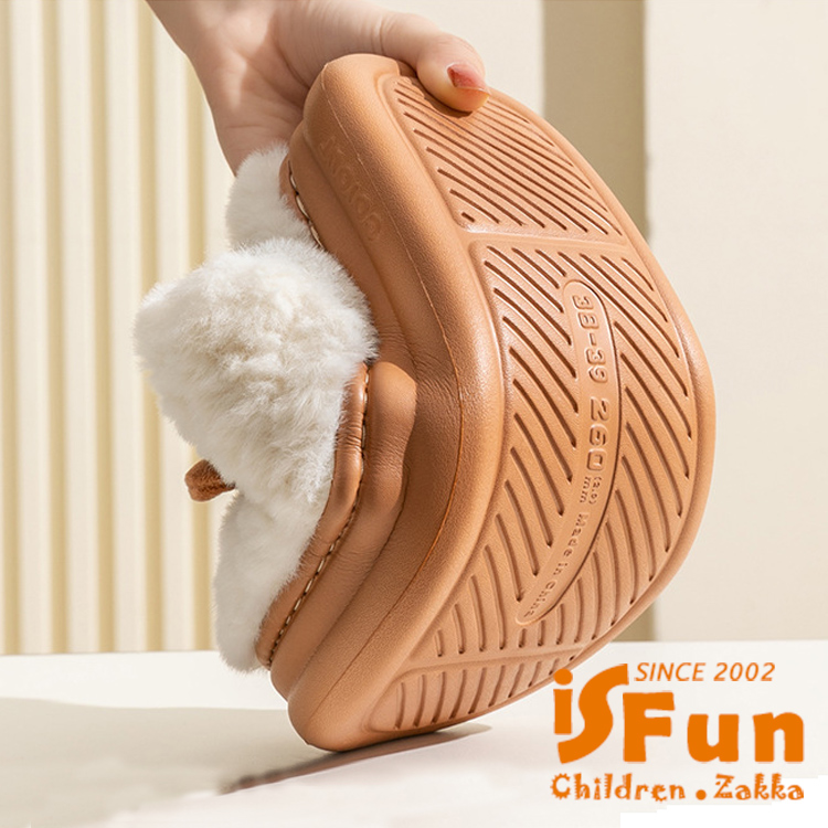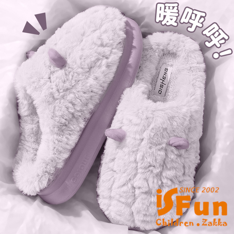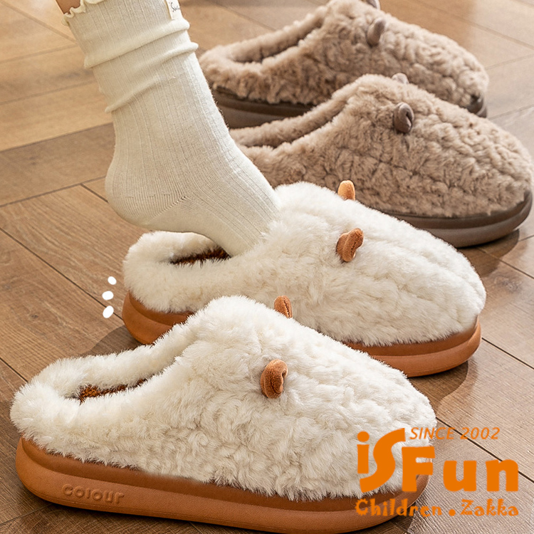 【iSFun】小耳朵河馬 厚底防滑秋冬保暖室內拖鞋/咖啡4445號