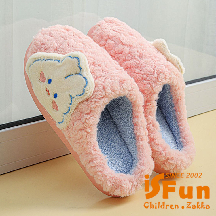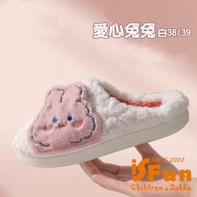 【iSFun】愛心兔兔 厚底保暖毛毛室內拖鞋/白/3839號