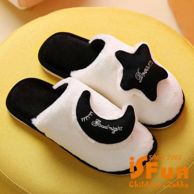 【iSFun】雅致星月 秋冬厚底防滑毛毛室內拖鞋/3839號黑白