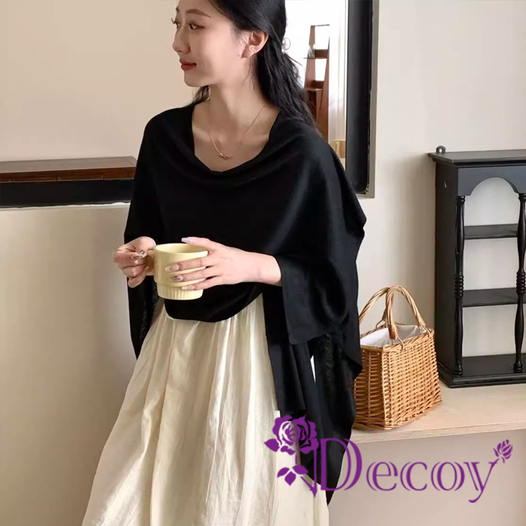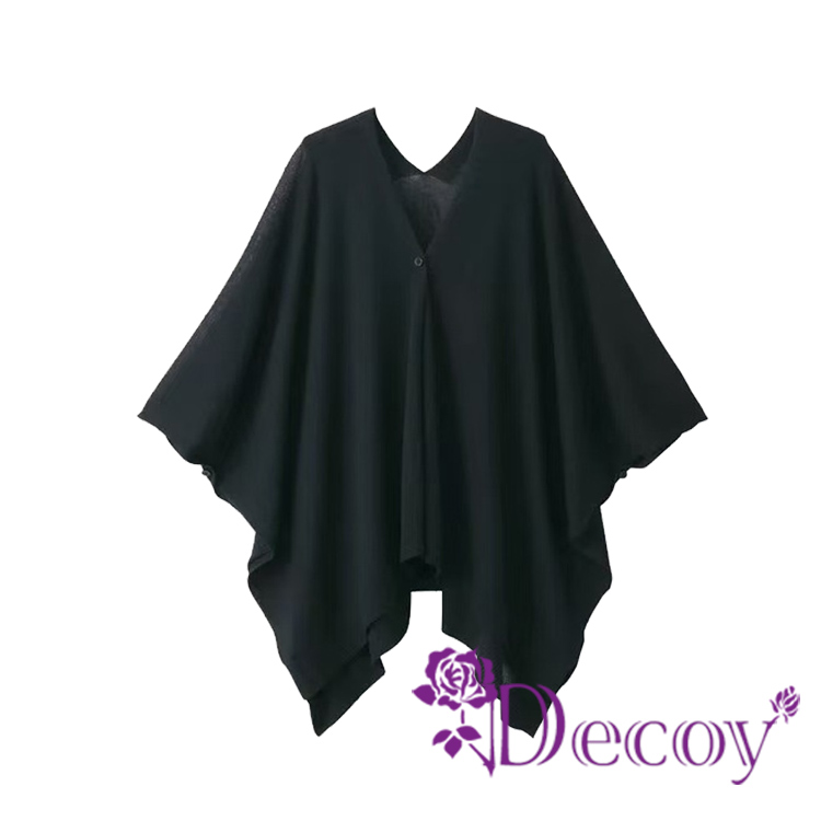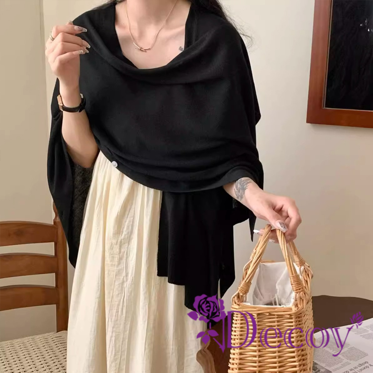 【Decoy】優雅名媛 純色保暖多功能罩衫披肩/黑色