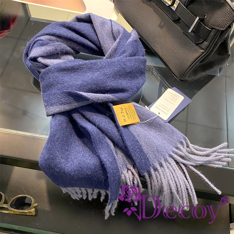 【Decoy】簡約百搭 拼接純色羊毛保暖圍巾/藍紫