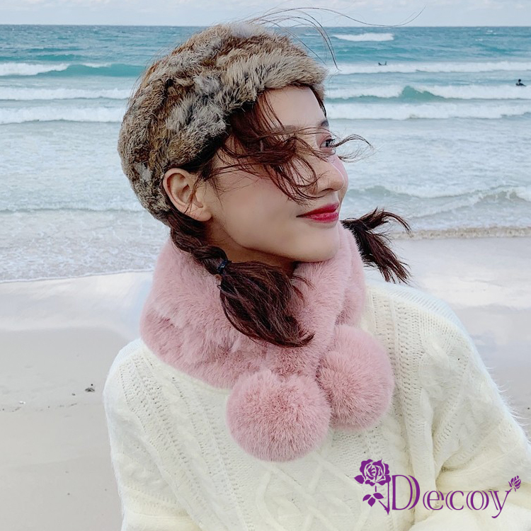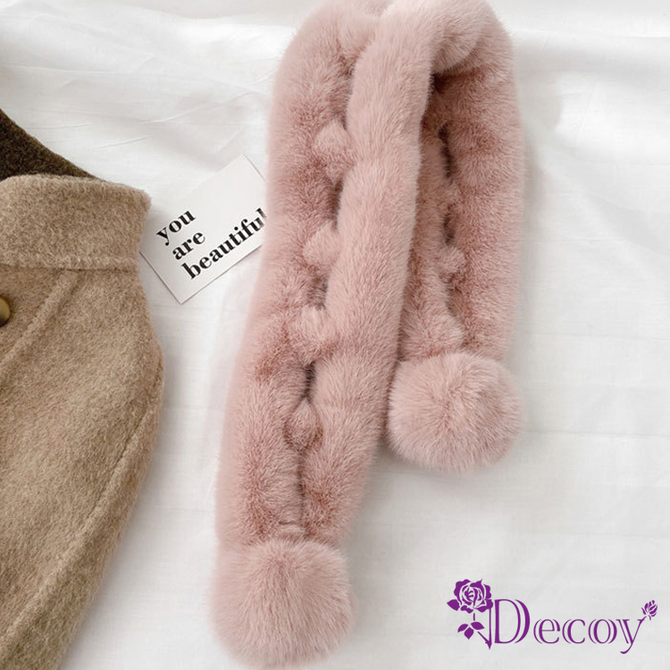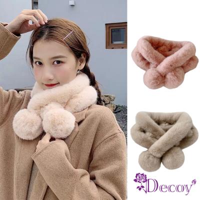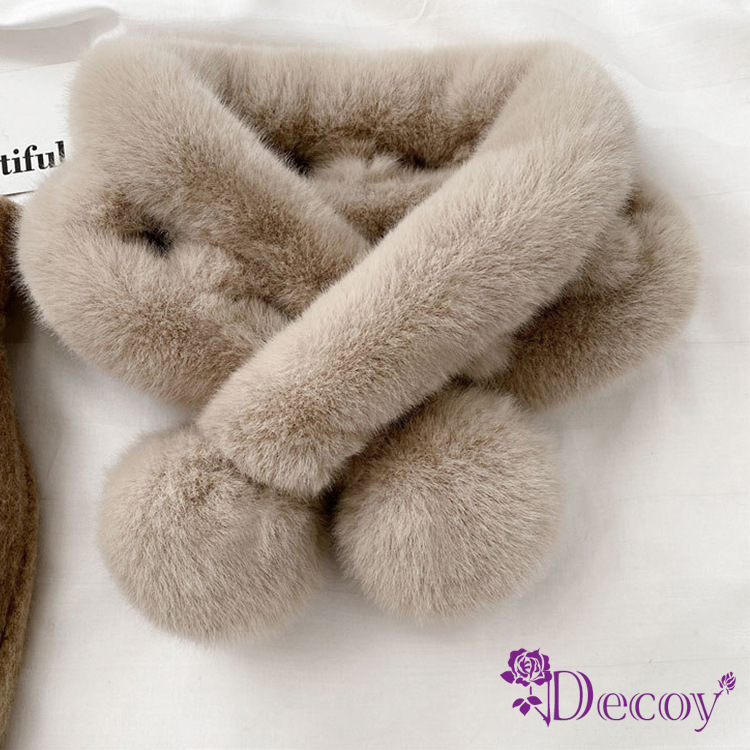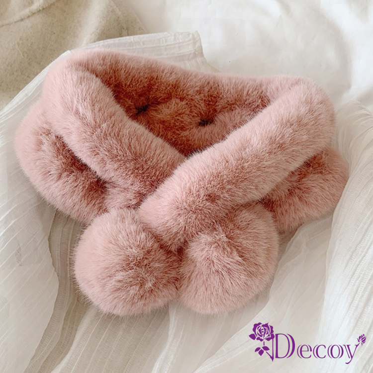 【Decoy】胖胖軟糯*保暖仿兔毛絨交叉脖圍圍巾/駝