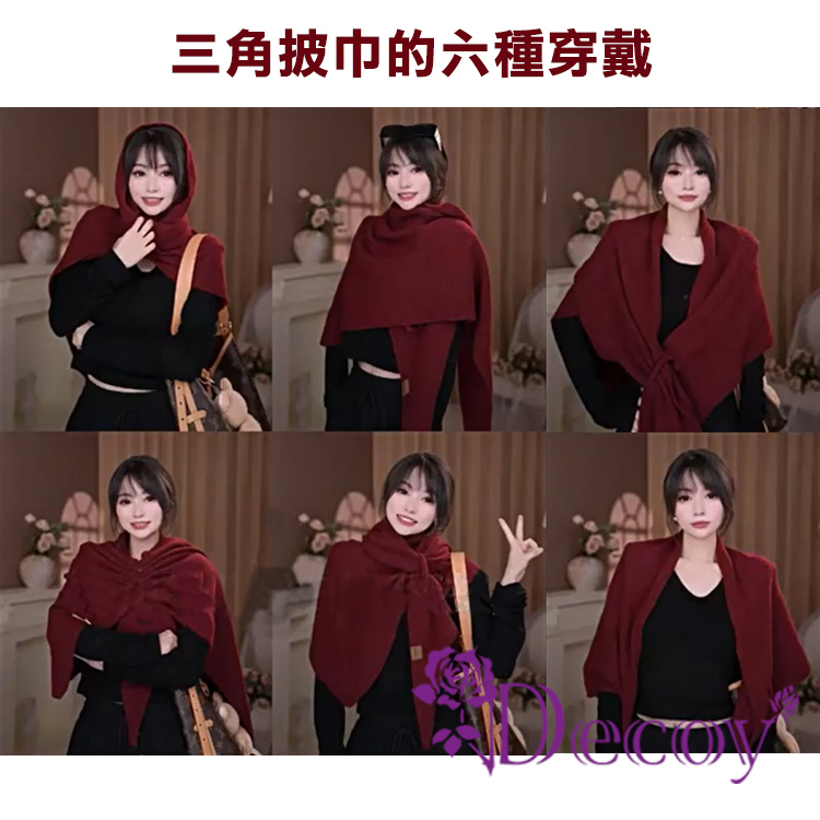 【Decoy】慵懶交叉 三角保暖仿羊絨披肩圍巾/駝色