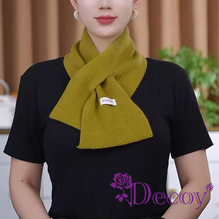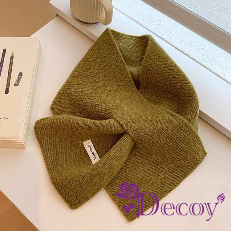 【Decoy】針織百搭 羊毛交叉圍脖小圍巾/橄欖綠