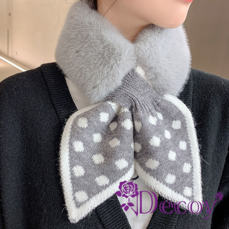 【Decoy】點點兔耳 保暖仿兔毛交叉脖圍圍巾/白