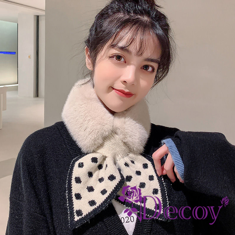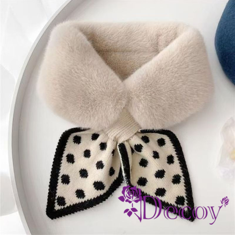 【Decoy】點點兔耳 保暖仿兔毛交叉脖圍圍巾/米