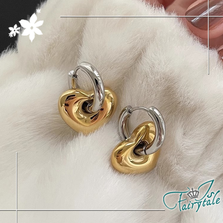 【伊飾童話】穿心桃心 簡約歐美兩用圓圈耳扣耳環