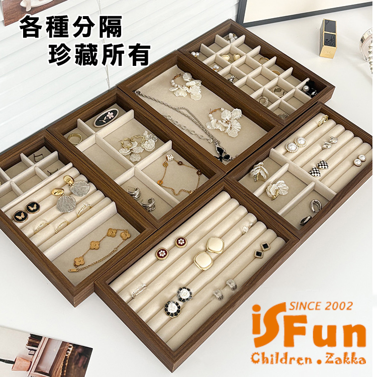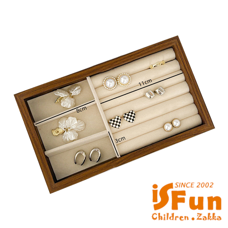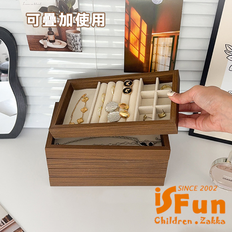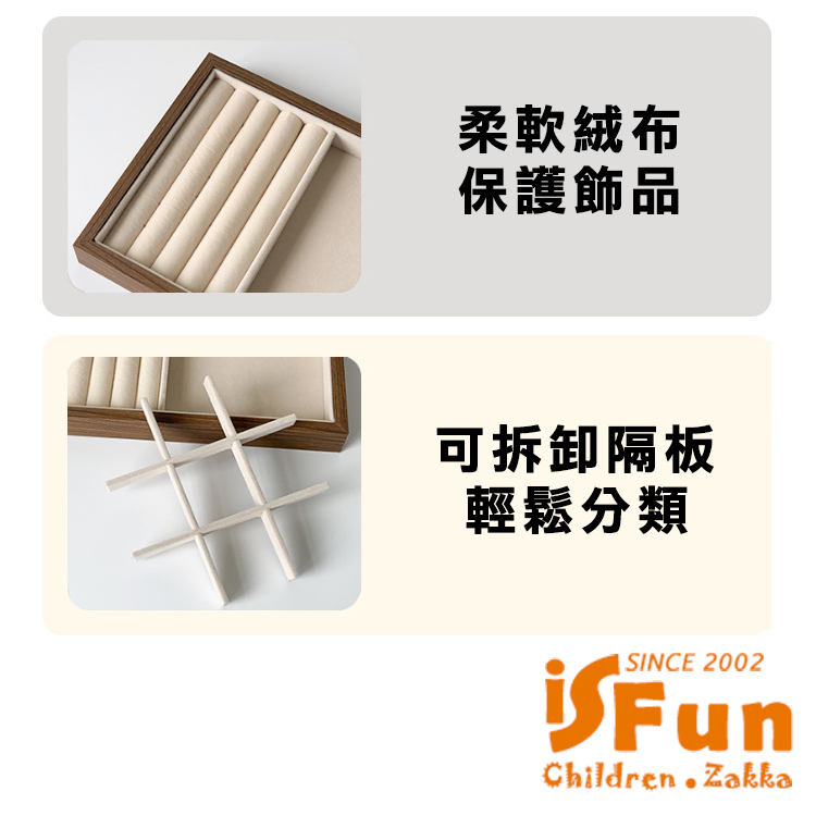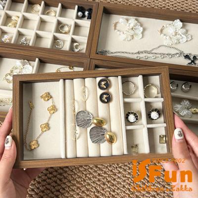 【iSFun】胡桃木紋 絨布飾品首飾展示收納盒/戒指+飾品款