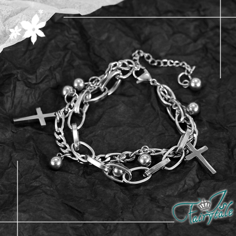 【伊飾童話】個性十字架*鈦鋼中性麻花多層手鍊