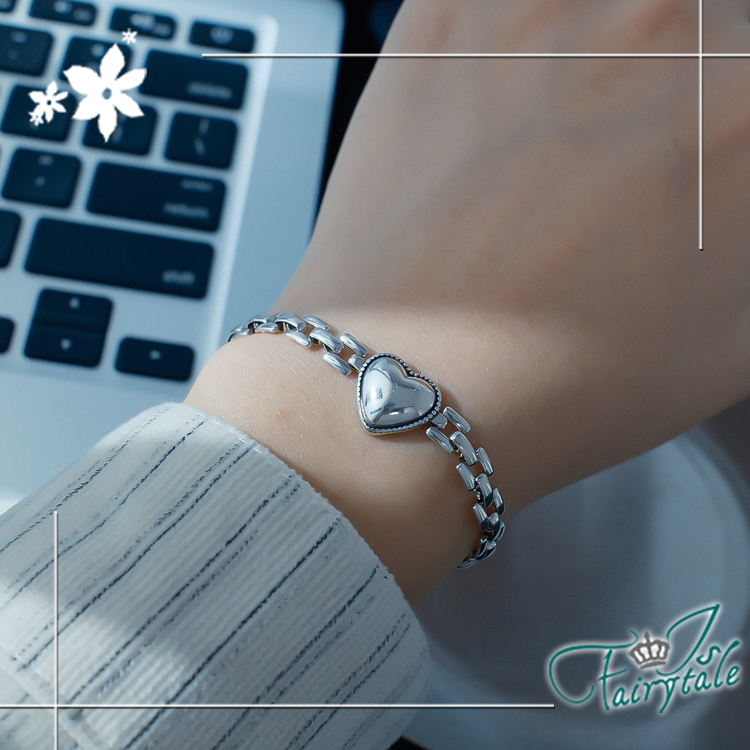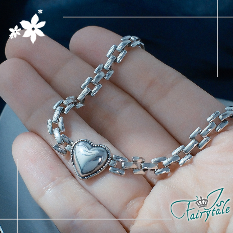 【伊飾童話】復古之心 小眾錶帶設計鈦鋼手鍊/鋼色
