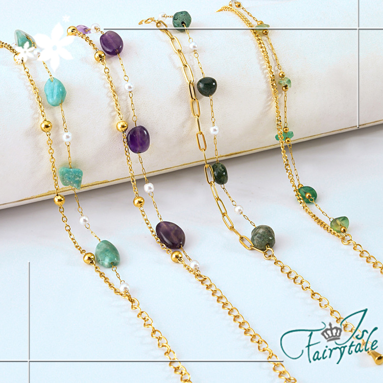 【伊飾童話】典雅交錯 綠松石雙層鈦鋼氣質手鍊