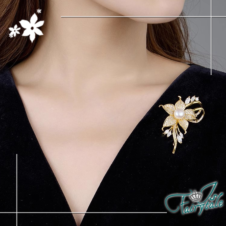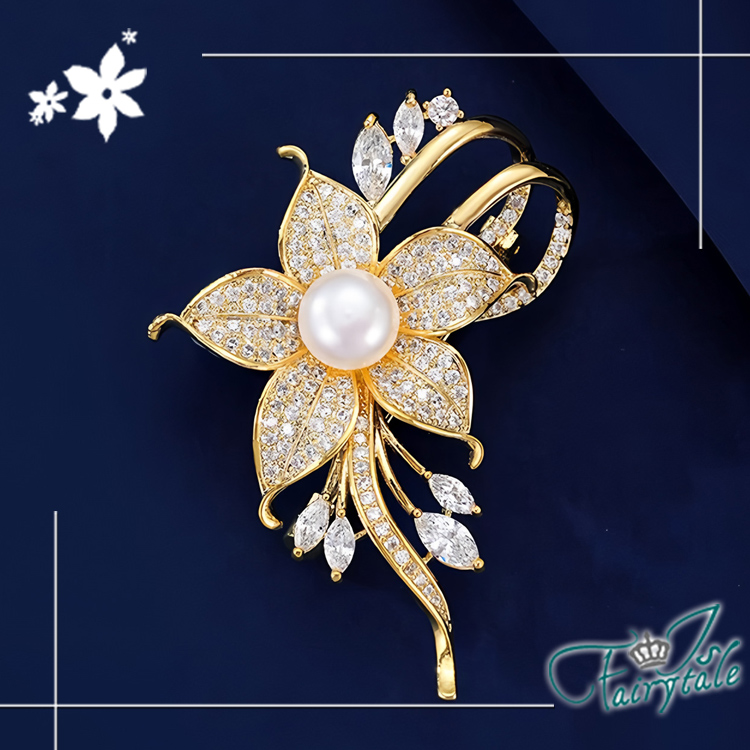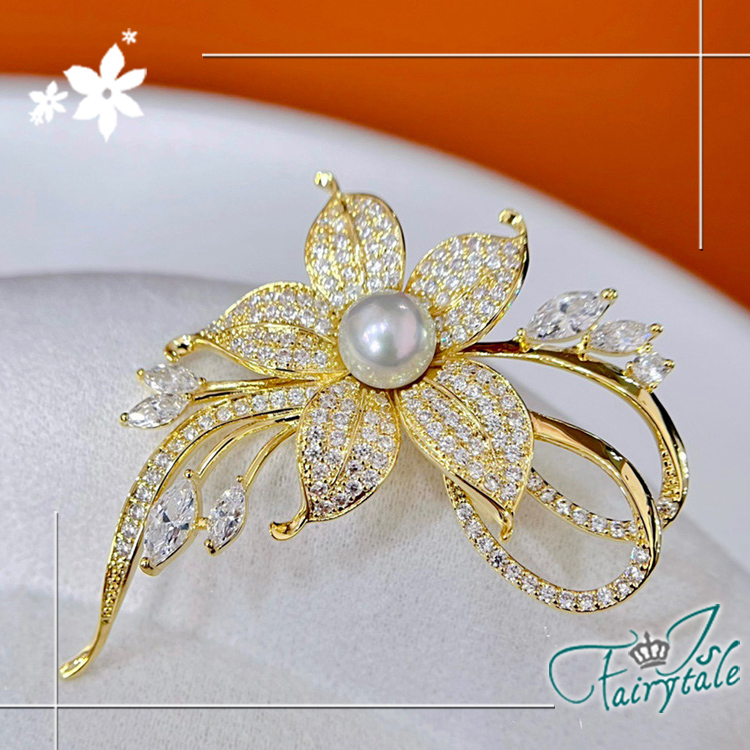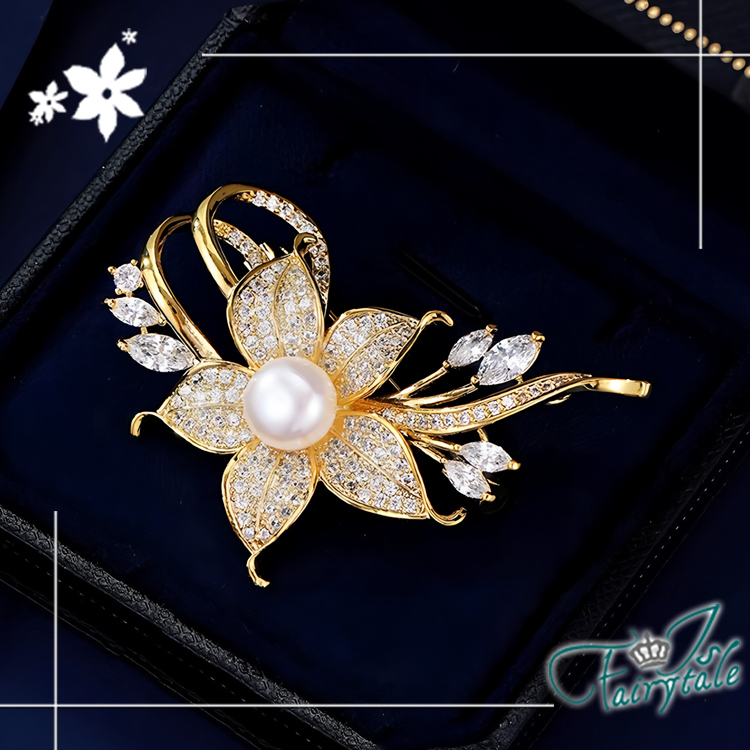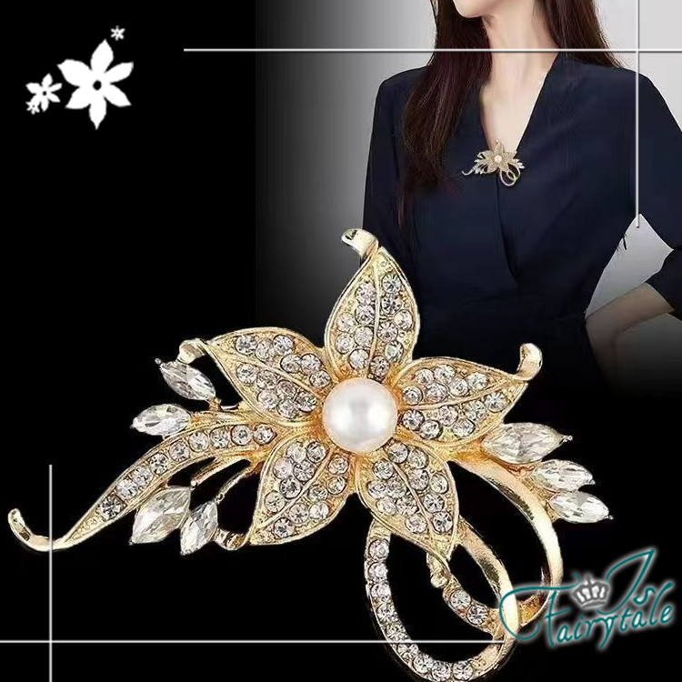 【伊飾童話】滿鑽禮花 花朵珍珠仕女胸針防走光別針