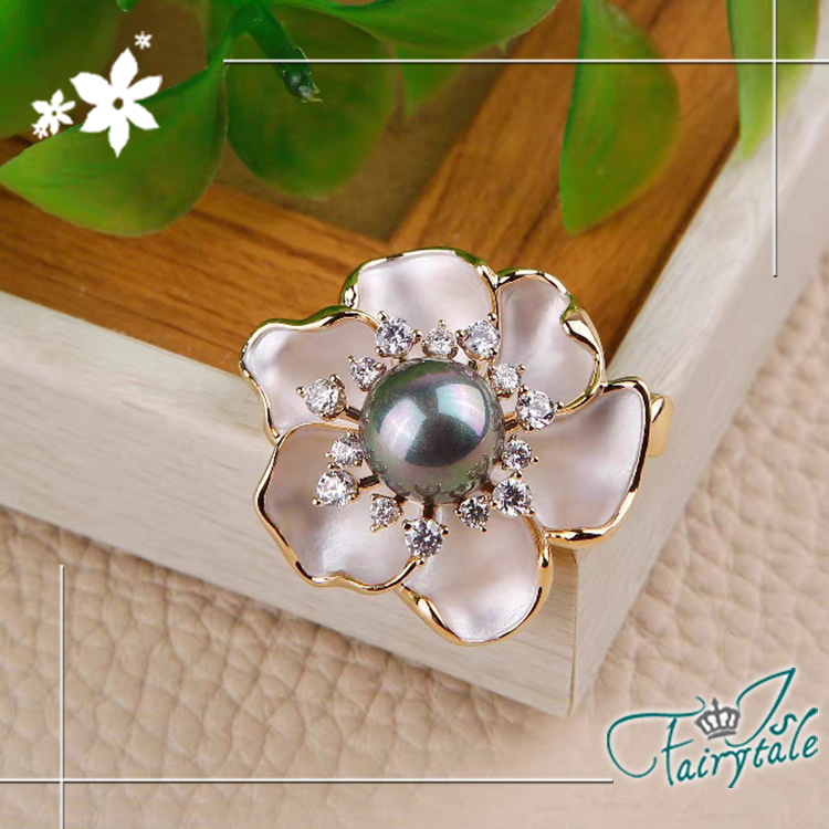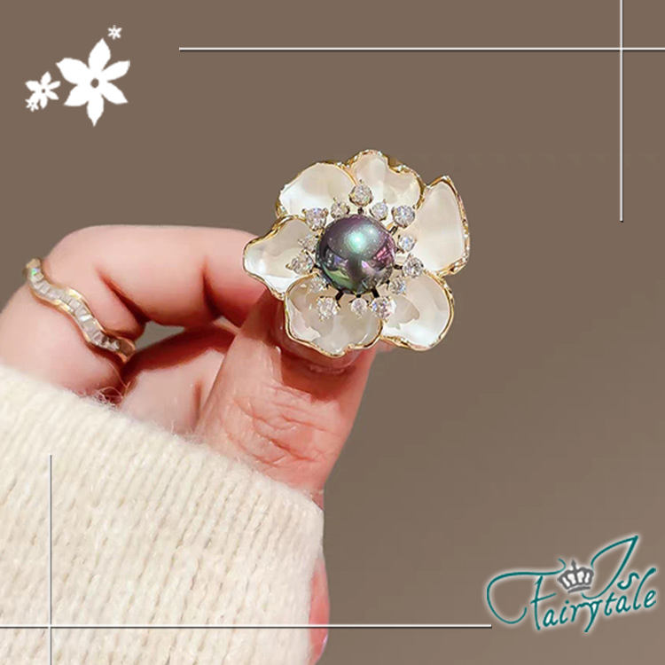 【伊飾童話】優雅山茶 珍珠花朵立體別針胸針/灰