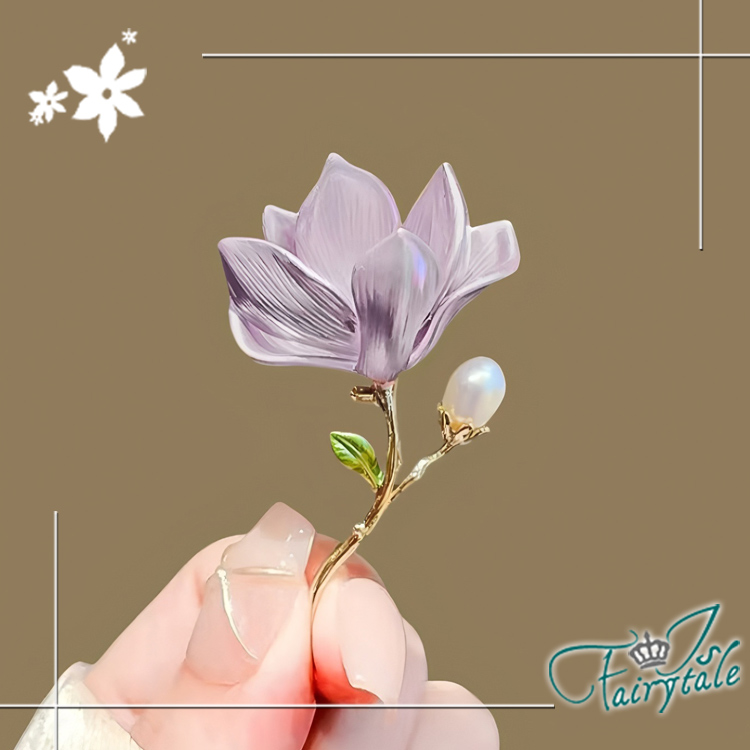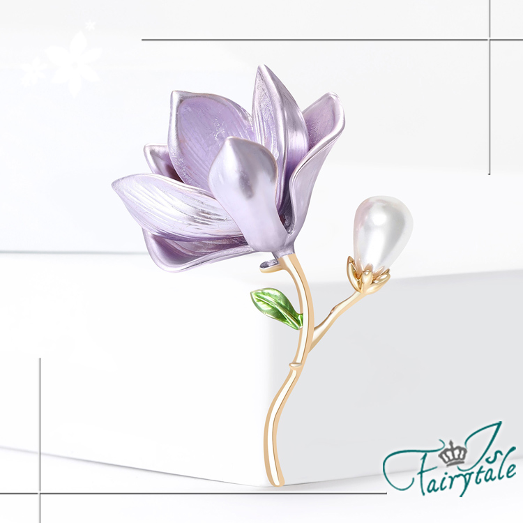 【伊飾童話】淡雅玉蘭 珍珠氣質花朵胸針別針/紫