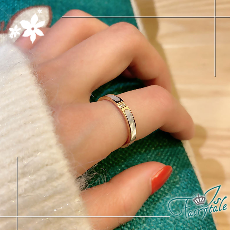 【伊飾童話】珍珠母貝 三鑽點綴鈦鋼金繽戒指/9號‧9號