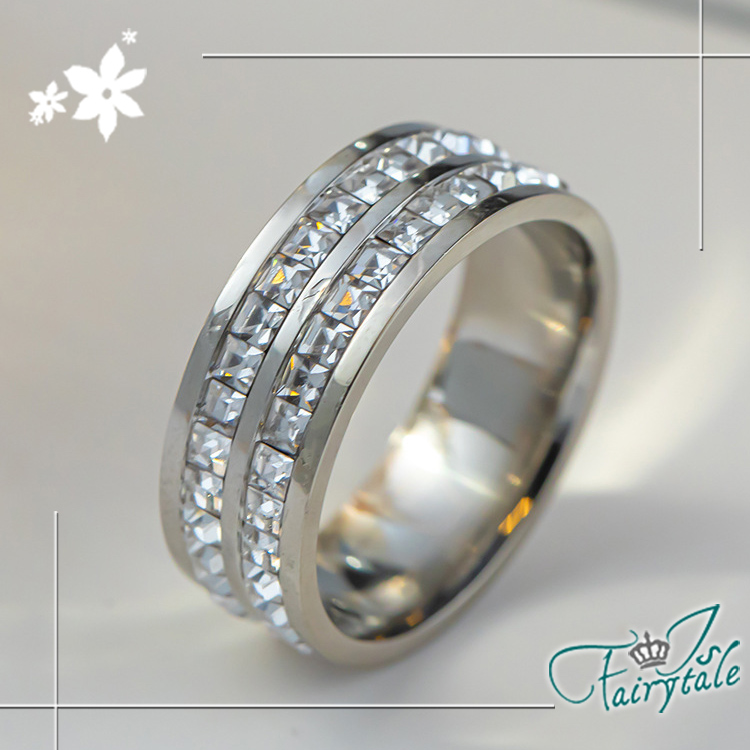 【伊飾童話】滿天閃耀 雙層碎鑽鈦鋼寬戒指/7號‧7號