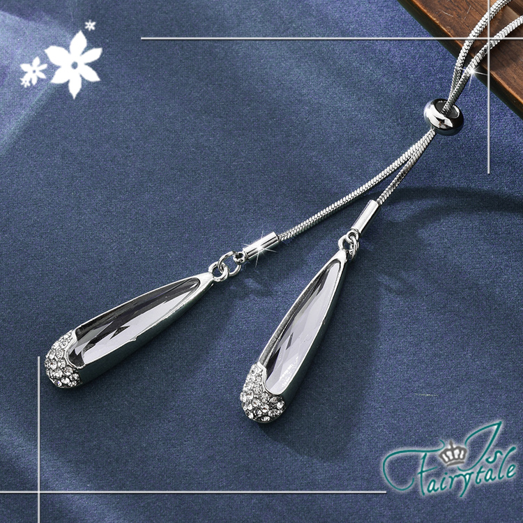 簡約水晶水滴光輝耀眼,時尚流蘇長鍊,可調整長度,