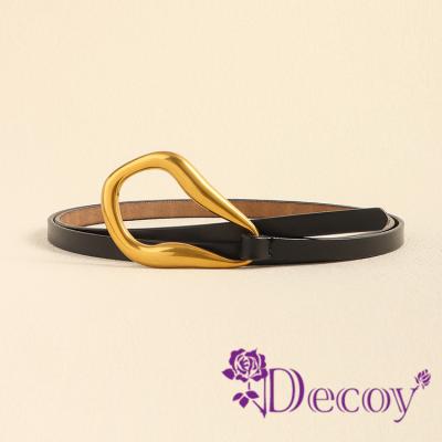 【Decoy】不規則時尚 大氣無孔綁式真皮細皮帶/黑色