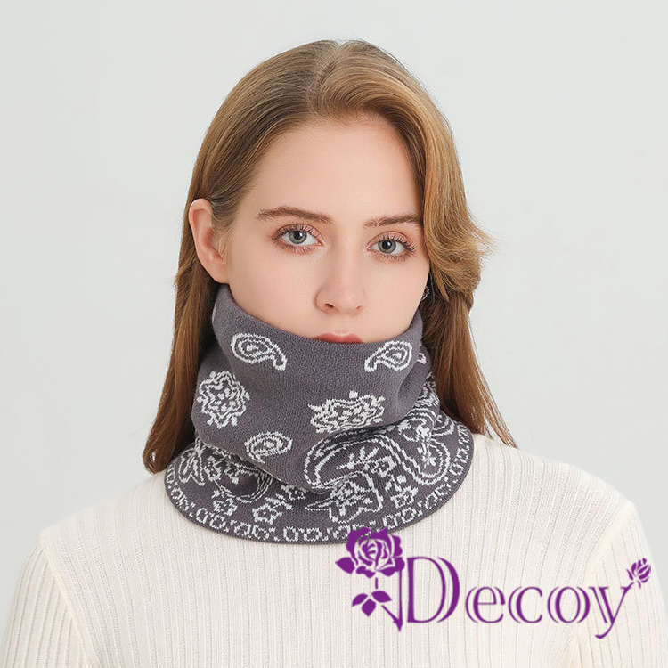 【Decoy】冬季加絨 雙層加厚針織百搭圍脖套/腰果花深灰