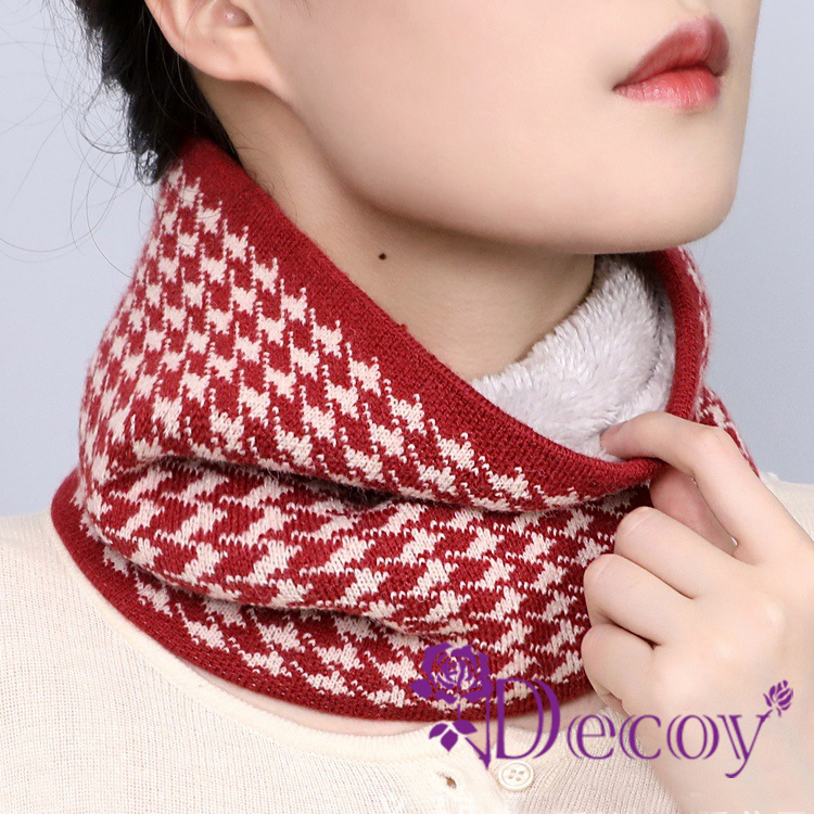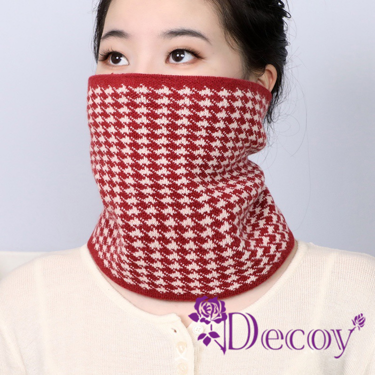 【Decoy】時尚千鳥格 雙層加厚針織百搭圍脖套/酒紅