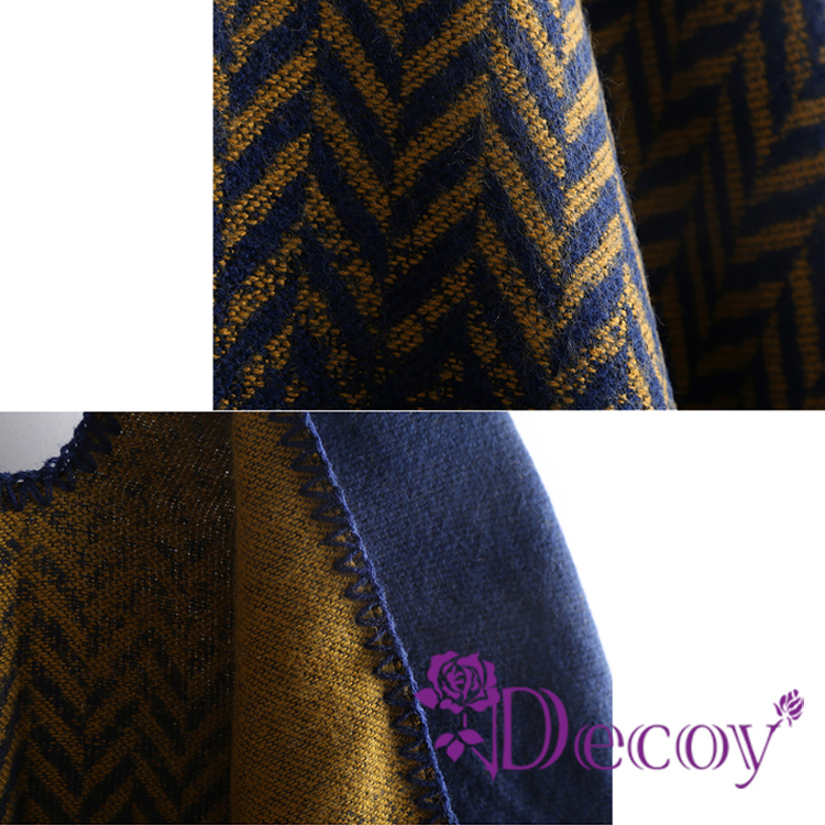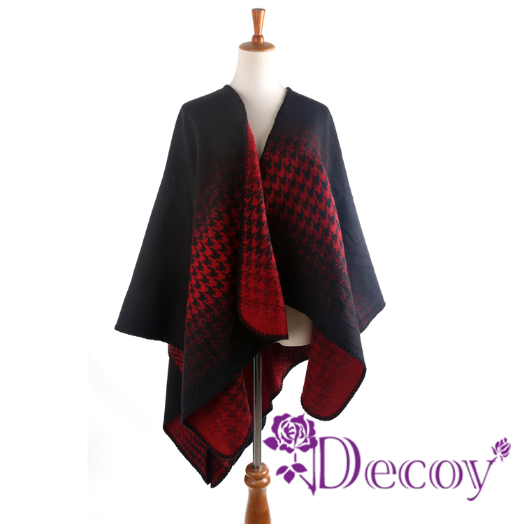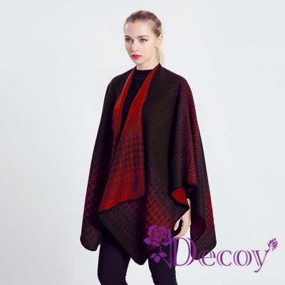 【Decoy】漸變千鳥 拼色人字紋加大保暖斗篷式披肩/紅黑
