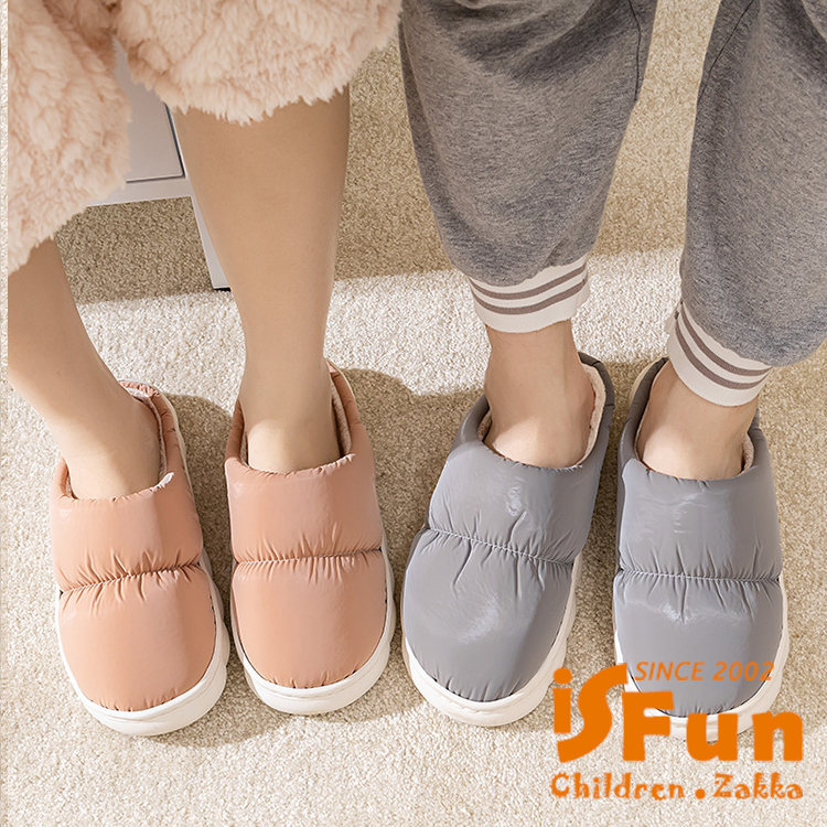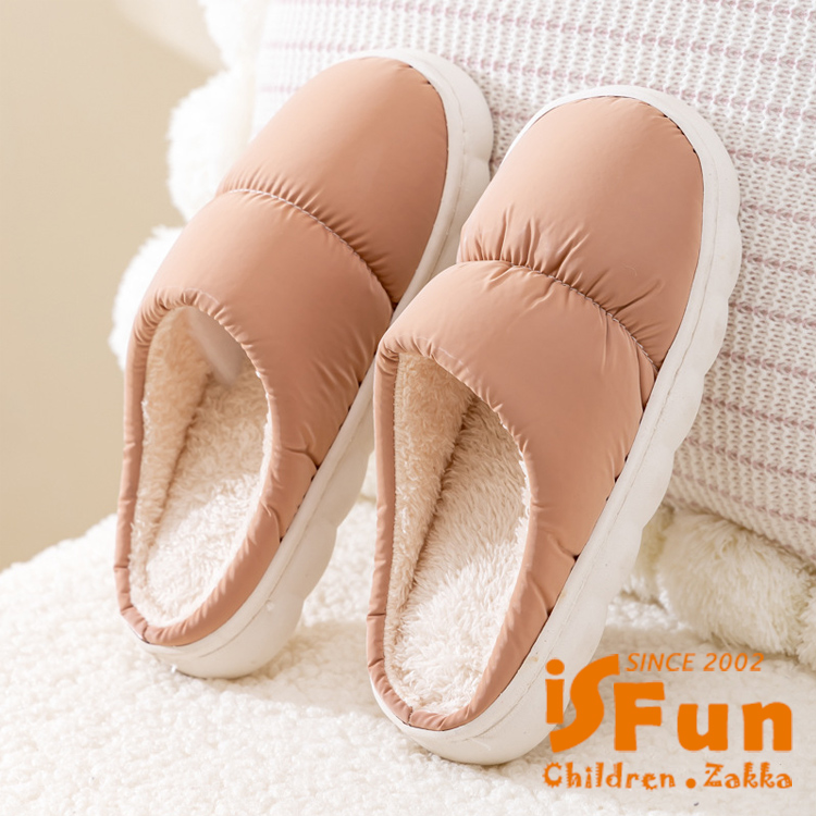 【iSFun】溫暖相伴 加絨保暖舒適防滑情侶居家拖鞋/粉色3637號