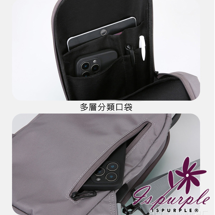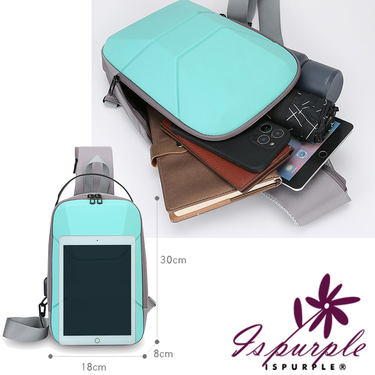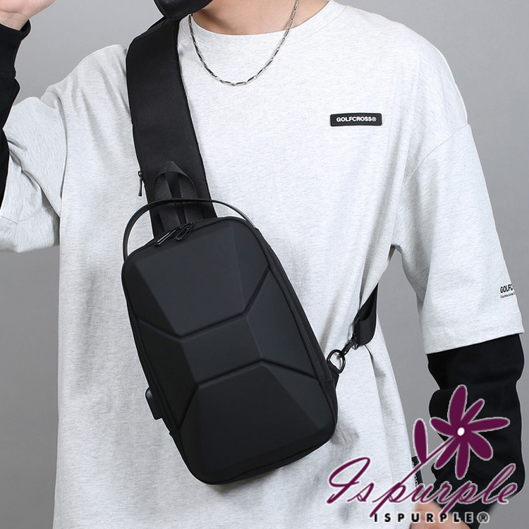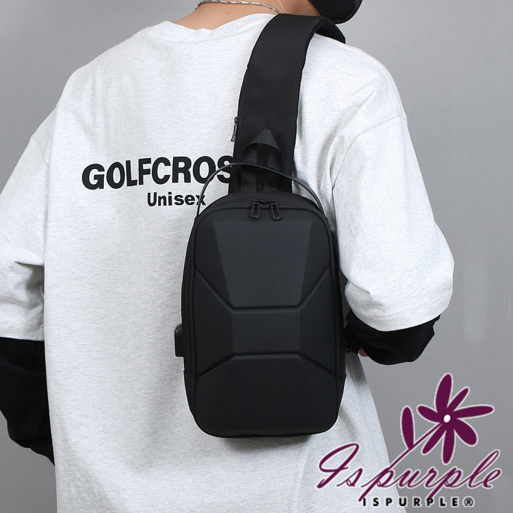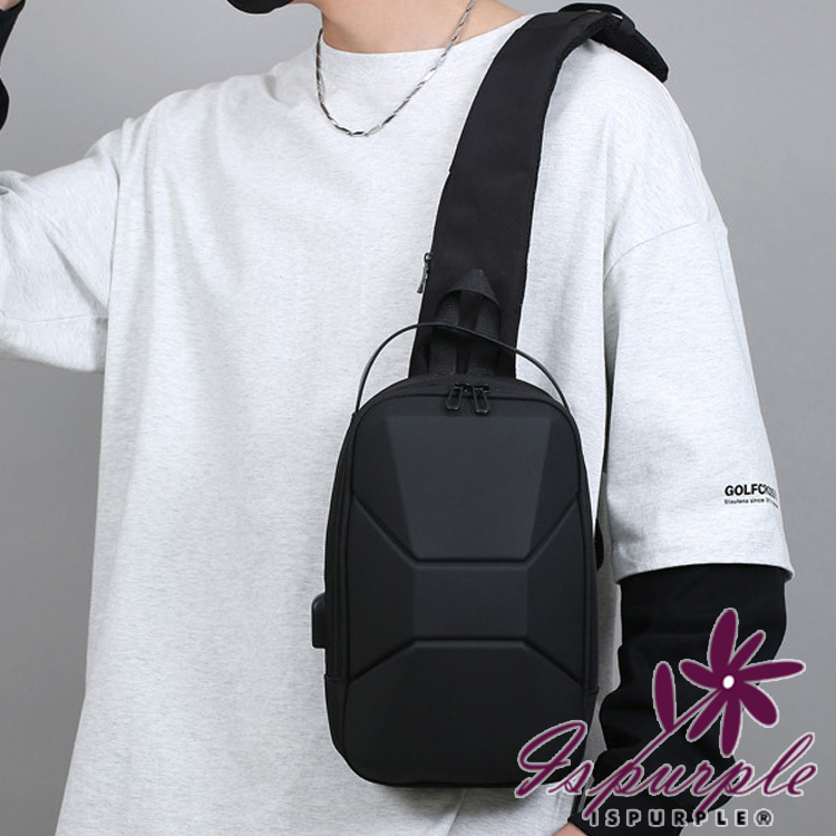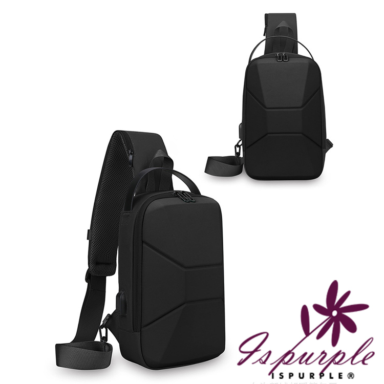 【iSPurple】硬殼潮流 輕便充電耐用斜垮單肩胸包/黑色