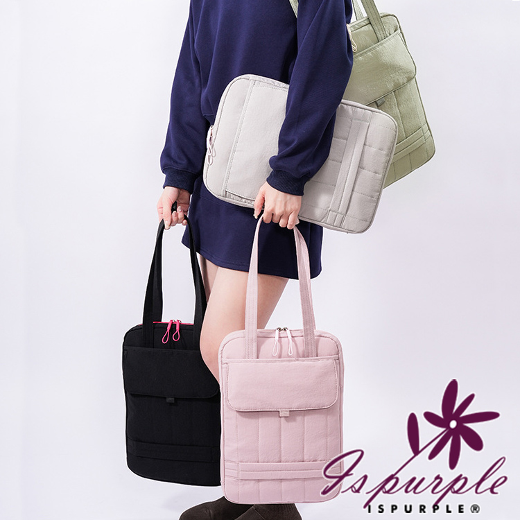 【iSPurple】清新時尚 鋪棉抗震手提手拿多功能電腦托特包/黑