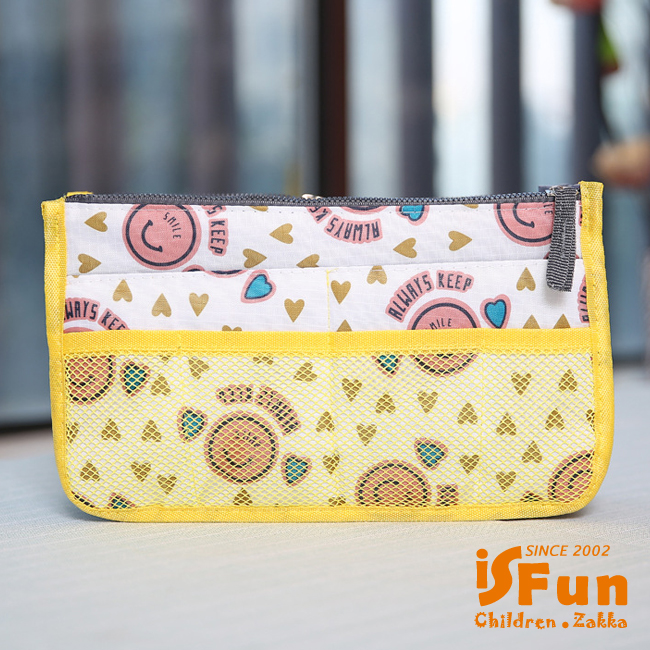 【iSFun】空氣感包*舖棉防撞化妝包中袋/粉色笑臉